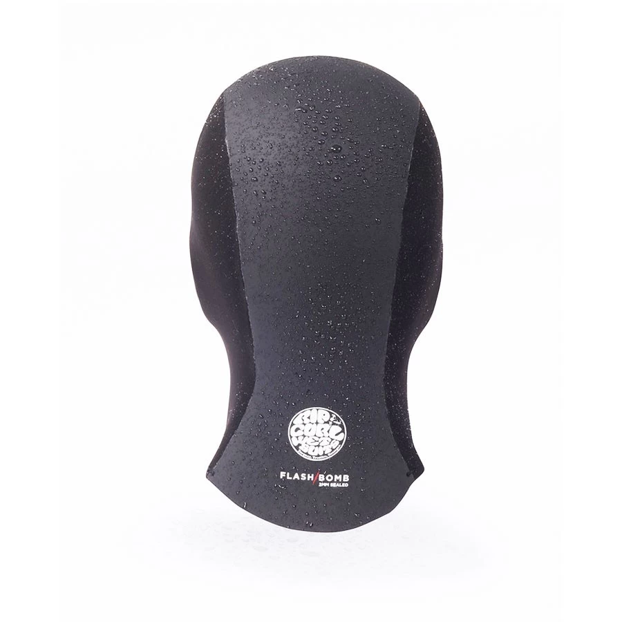 La cagoule 2 mm Flash-Bomb en néoprèneb E6 doublée Flash lining E6, une doublure thermique hydrophobe qui sèche en moins de 15 minutes, les coutures sont cousues collées, le modèle est en « Open Face moins », l’ouverture au niveau du visage est plus grande ce qui est parfait pour ceux qui ont facilement la sensation d’étouffer , et une visière empêche l’eau de couler sur vos yeux.