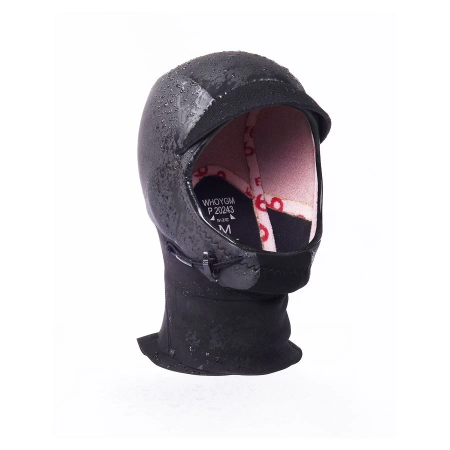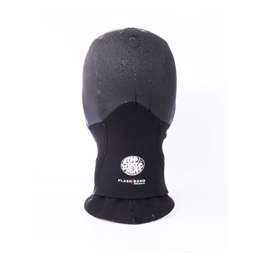 La cagoule 3mm Flash-Bomb en néoprèneb E6 doublée Flash lining E6, une doublure thermique hydrophobe qui sèche en moins de 15 minutes, les coutures sont cousues collées et galonnées avec du E6 tape, un cordon de serrage permet de l’ajuster à votre tête, le double col assure encore plus des entrées d’eau, et une visière empêche l’eau de couler sur vos yeux.